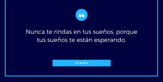 «El éxito se construye día a día con esfuerzo y dedicación,» dice Ciara, subrayando la importancia del trabajo constante y la perseverancia. Nos anima a mantenernos enfocados en nuestros objetivos y a trabajar arduamente cada día para acercarnos a ellos. Nos inspira a valorar el proceso y a ser persistentes en la búsqueda de nuestros sueños.