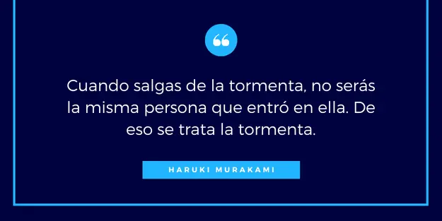 Para concluir, las palabras de Haruki Murakami nos sumergen en un viaje introspectivo que revela las complejidades y las bellezas de la existencia humana. «Y cuando la tormenta termine, no recordarás cómo lo lograste, cómo sobreviviste. No estarás seguro de si la tormenta ha terminado realmente. Pero una cosa es segura. Cuando salgas de esa tormenta, no serás la misma persona que entró en ella. De eso se trata la tormenta.» Esta frase nos enseña que cada desafío nos moldea y nos transforma, invitándonos a ver las dificultades como oportunidades de crecimiento y cambio.